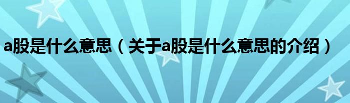 大家好,小新来为大家解答以上的问题。a股是什么意思,关于a股是什么意思的介绍很多人还不知道,现在让我们一起来看看吧!