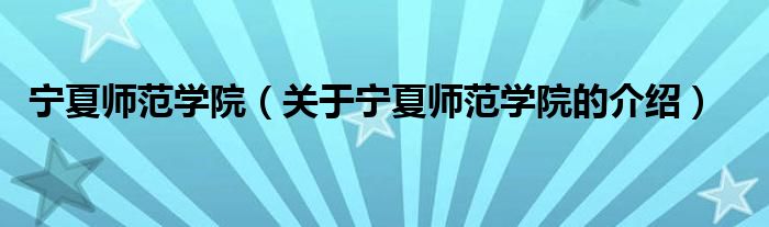 大家好,小新来为大家解答以上的问题。宁夏师范学院,关于宁夏师范学院的介绍很多人还不知道,现在让我们一起来看看吧!
