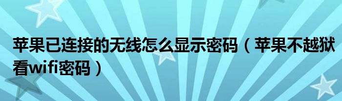 大家好,小育来为大家解答以上问题。苹果已连接的无线怎么显示密码,苹果不越狱看wifi密码很多人还不知道,现在让我们一起来看看吧!
