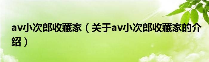 大家好,小新来为大家解答以上的问题。av小次郎收藏家,关于av小次郎收藏家的介绍很多人还不知道,现在让我们一起来看看吧!