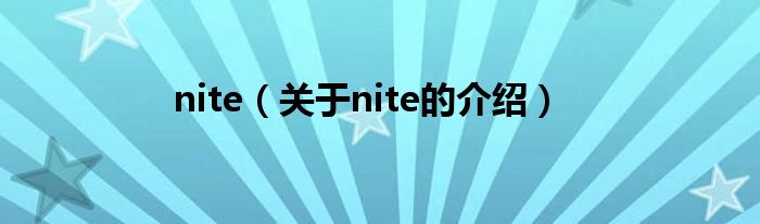 大家好,小新来为大家解答以上的问题。nite,关于nite的介绍很多人还不知道,现在让我们一起来看看吧!