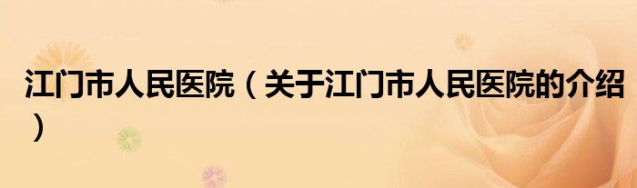 大家好,小新来为大家解答以上的问题。江门市人民医院,关于江门市人民医院的介绍很多人还不知道,现在让我们一起来看看吧!
