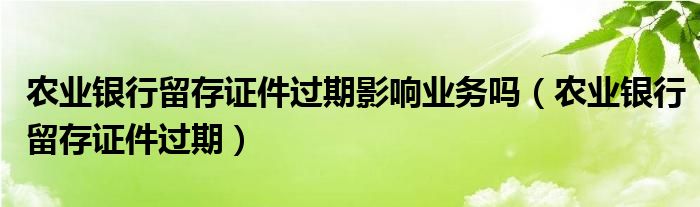 大家好,小育来为大家解答以上问题。农业银行留存证件过期影响业务吗,农业银行留存证件过期很多人还不知道,现在让我们一起来看看吧!