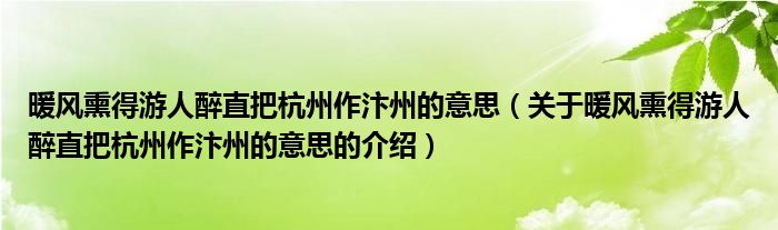 大家好,小新来为大家解答以上的问题。暖风熏得游人醉直把杭州作汴州的意思,关于暖风熏得游人醉直把杭州作汴州的意思的介绍很多人还不知道,现在让我们一起来看看吧!