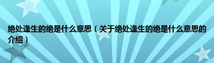 大家好,小新来为大家解答以上的问题。绝处逢生的绝是什么意思,关于绝处逢生的绝是什么意思的介绍很多人还不知道,现在让我们一起来看看吧!