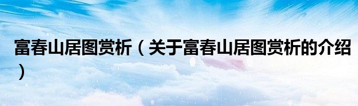 大家好,小新来为大家解答以上的问题。富春山居图赏析,关于富春山居图赏析的介绍很多人还不知道,现在让我们一起来看看吧!