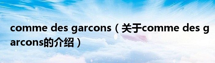 大家好,小新来为大家解答以上的问题。comme des garcons,关于comme des garcons的介绍很多人还不知道,现在让我们一起来看看吧!