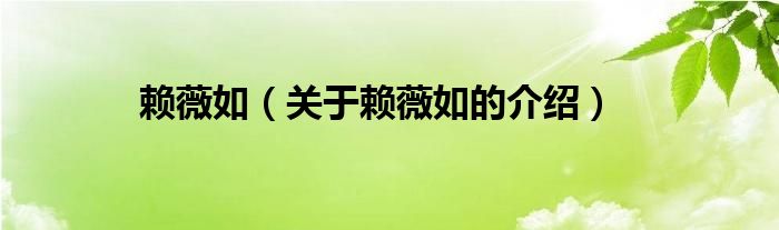 大家好,小新来为大家解答以上的问题。赖薇如,关于赖薇如的介绍很多人还不知道,现在让我们一起来看看吧!