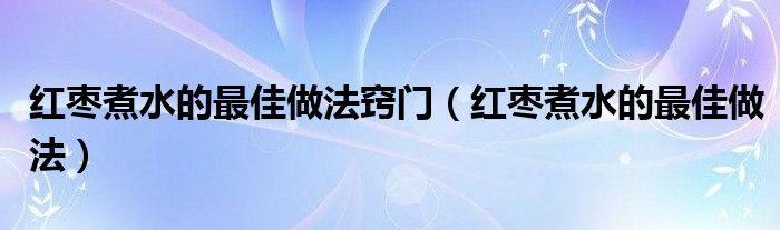 大家好,小育来为大家解答以上问题。红枣煮水的最佳做法窍门,红枣煮水的最佳做法很多人还不知道,现在让我们一起来看看吧!