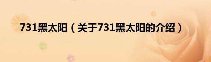 大家好,小新来为大家解答以上的问题。731黑太阳,关于731黑太阳的介绍很多人还不知道,现在让我们一起来看看吧!