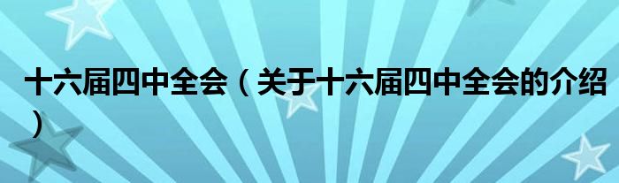 大家好,小新来为大家解答以上的问题。十六届四中全会,关于十六届四中全会的介绍很多人还不知道,现在让我们一起来看看吧!