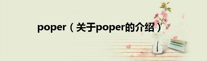 大家好,小新来为大家解答以上的问题。poper,关于poper的介绍很多人还不知道,现在让我们一起来看看吧!