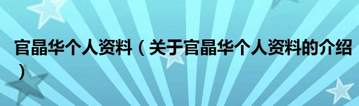 大家好,小新来为大家解答以上的问题。官晶华个人资料,关于官晶华个人资料的介绍很多人还不知道,现在让我们一起来看看吧!