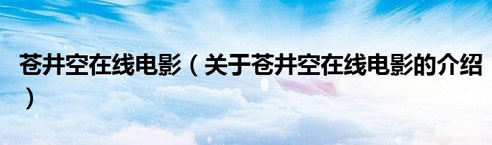 大家好,小新来为大家解答以上的问题。苍井空在线电影,关于苍井空在线电影的介绍很多人还不知道,现在让我们一起来看看吧!