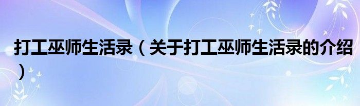 大家好,小新来为大家解答以上的问题。打工巫师生活录,关于打工巫师生活录的介绍很多人还不知道,现在让我们一起来看看吧!
