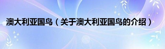 大家好,小新来为大家解答以上的问题。澳大利亚国鸟,关于澳大利亚国鸟的介绍很多人还不知道,现在让我们一起来看看吧!