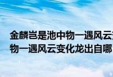 大家好,伊人来为大家解答以上问题。金麟岂是池中物一遇风云变化龙的意思是啥,金麟岂是池中物一遇风云变化龙出自哪很多人还不知道,现在让