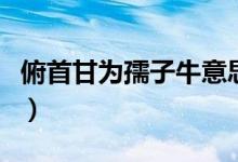 大家好,小君来为大家解答以上问题。俯首甘为孺子牛意思,俯首甘为孺子牛的意思很多人还不知道,现在让我们一起来看看吧!1、“甘为孺子牛